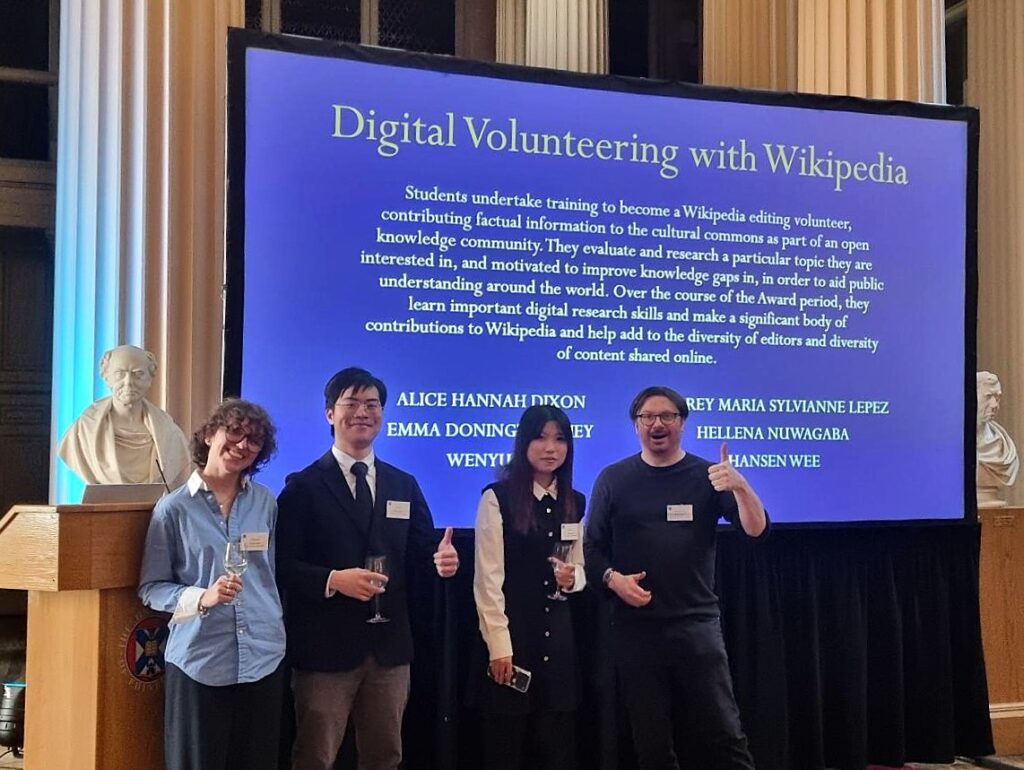 We know that many students are involved in activities alongside their studies such as volunteering, part-time work, and getting involved in the University community. To help these activities to stand out from the crowd, our University has had an Award for “Digital Volunteering with Wikipedia” to sit beside other available Edinburgh Awards for the last five years now. The Edinburgh Award is a programme that allows students to get official recognition for their involvement in extracurricular activities and demonstrate their digital capabilities to employers.